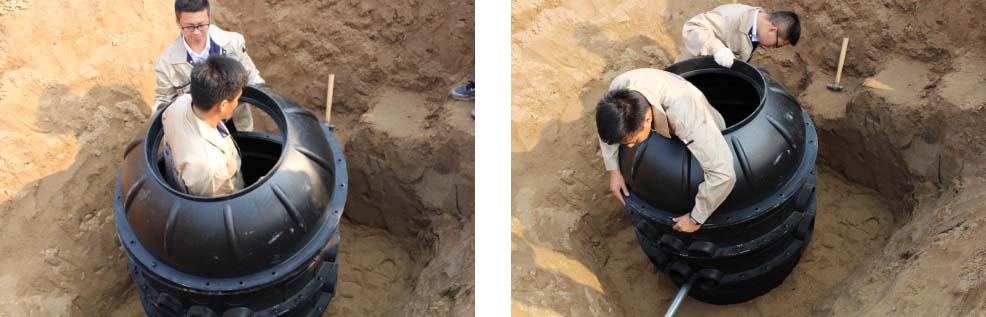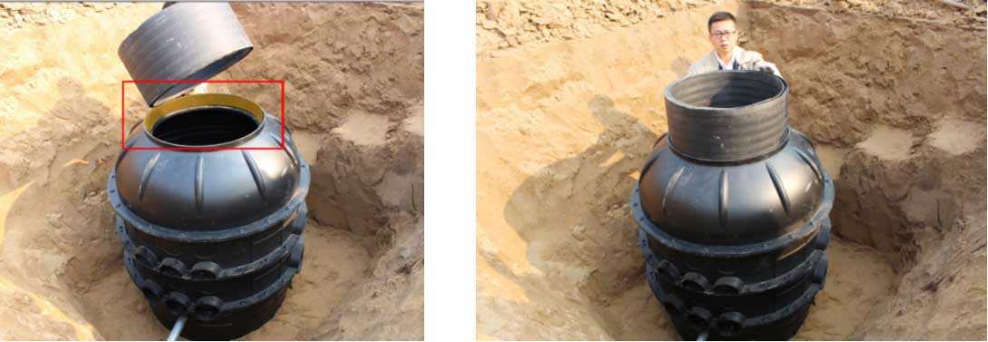 1.安裝密封條 2.安裝井室 3.在施工中,根據標高不同,可通過井室增減進行高度調節。