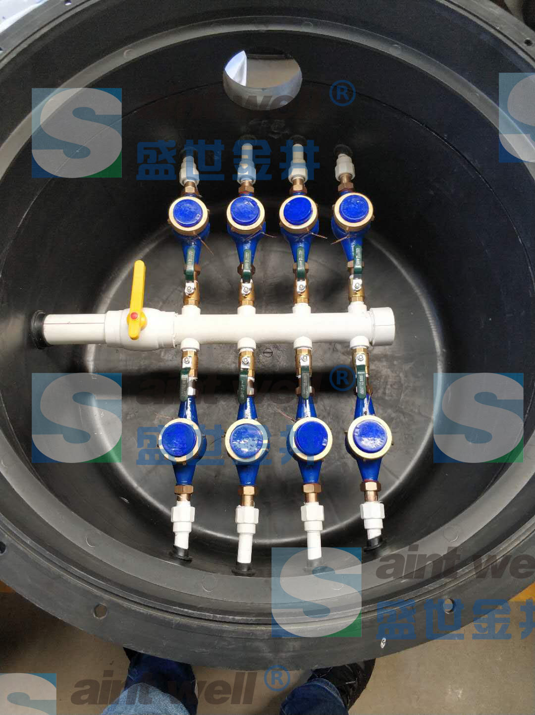 1米水表閥門井,井底部平鋪可以滿足8塊水表的安裝,添加井室后,還可以滿足更多的水表安裝。