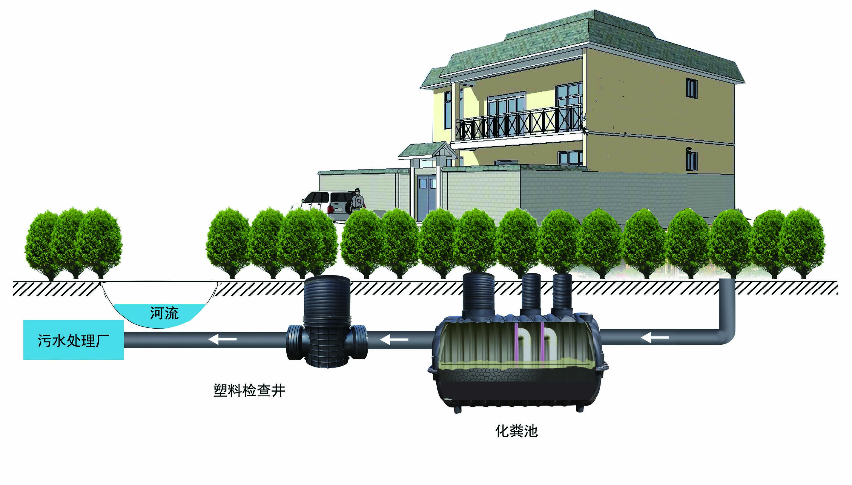 塑料“三格式”化糞池一般是與水沖式廁所相配套,由進水管、分格池、過糞管、蓋板等部分組成。其容積應根據使用人數、沖水量、糞便發酵腐熟的時間以及沉卵滅菌的要求來決定。