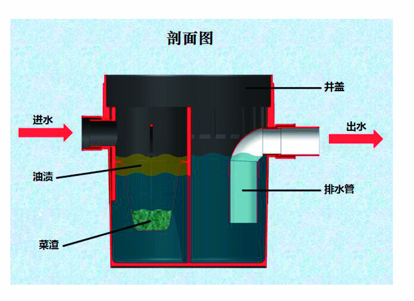 作用:將排出的油及其他雜物隔離在油污隔離井內部,待后期清除掉,防止管道被堵塞。